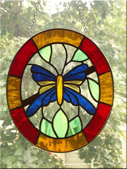 Blue & Yellow Butterfly with Leaves Suncatcher